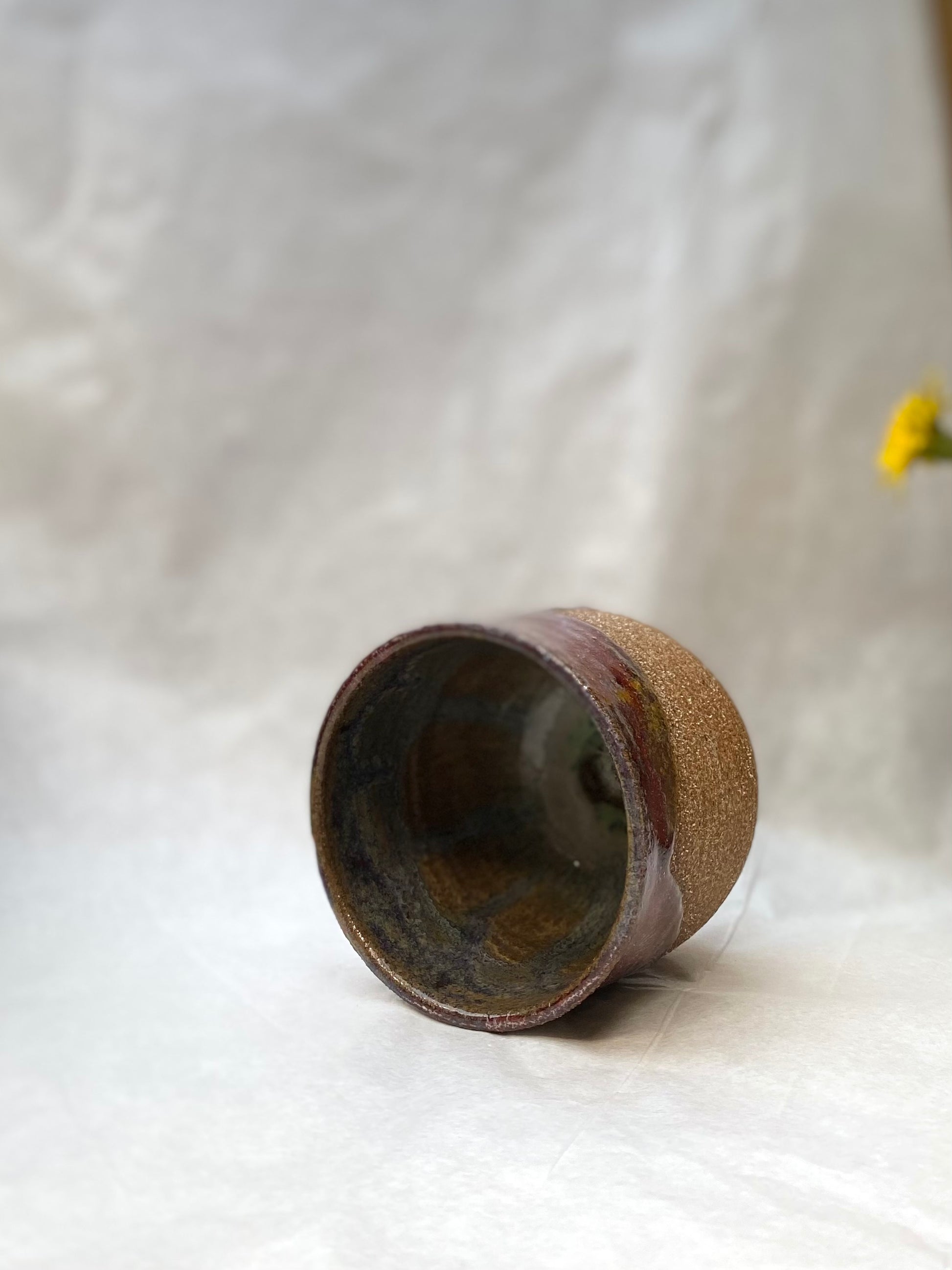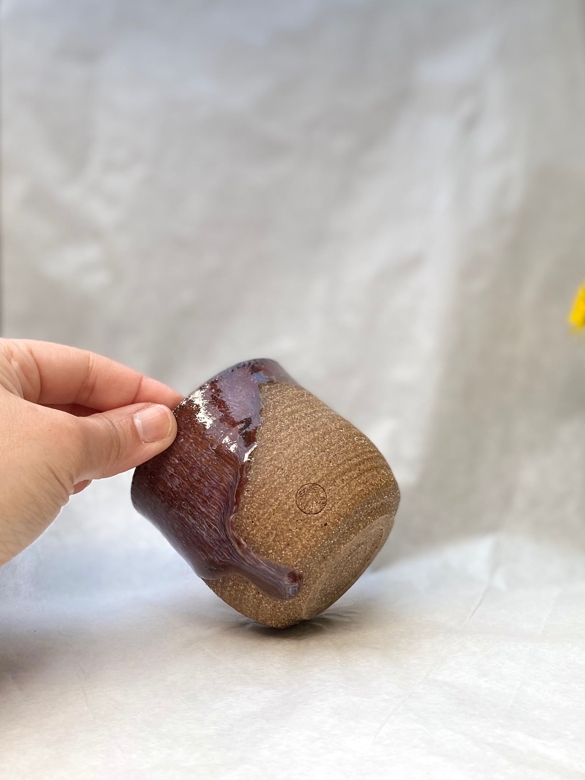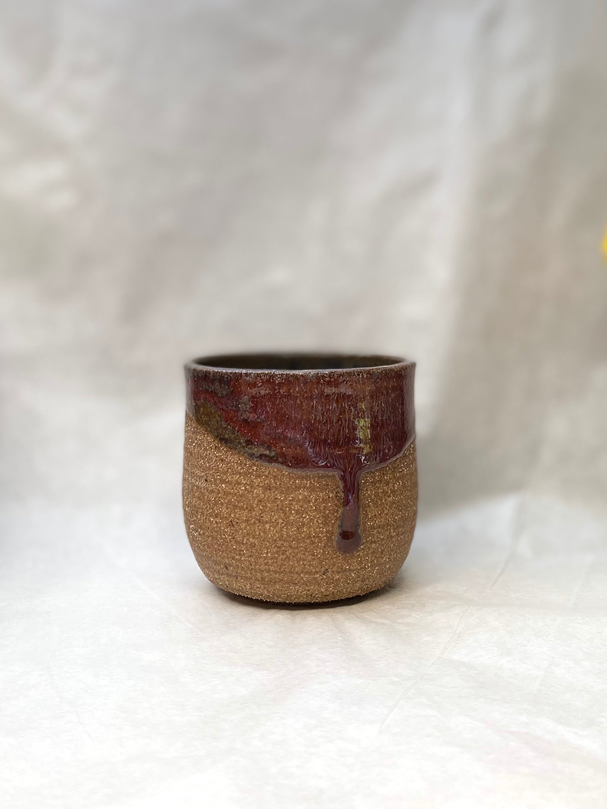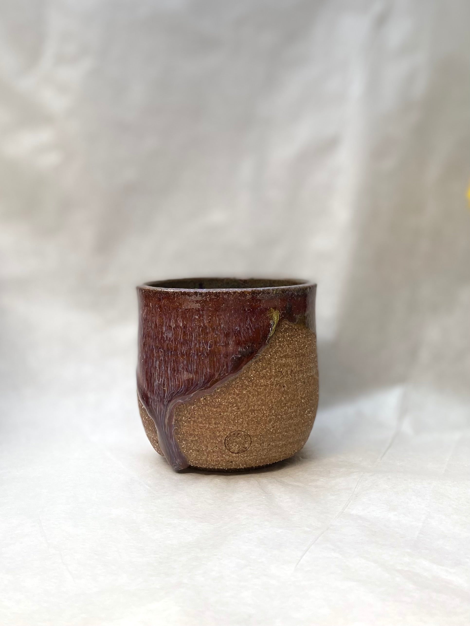 This cup is made from a mason stained brown clay, hand thrown & trimmed on the wheel.