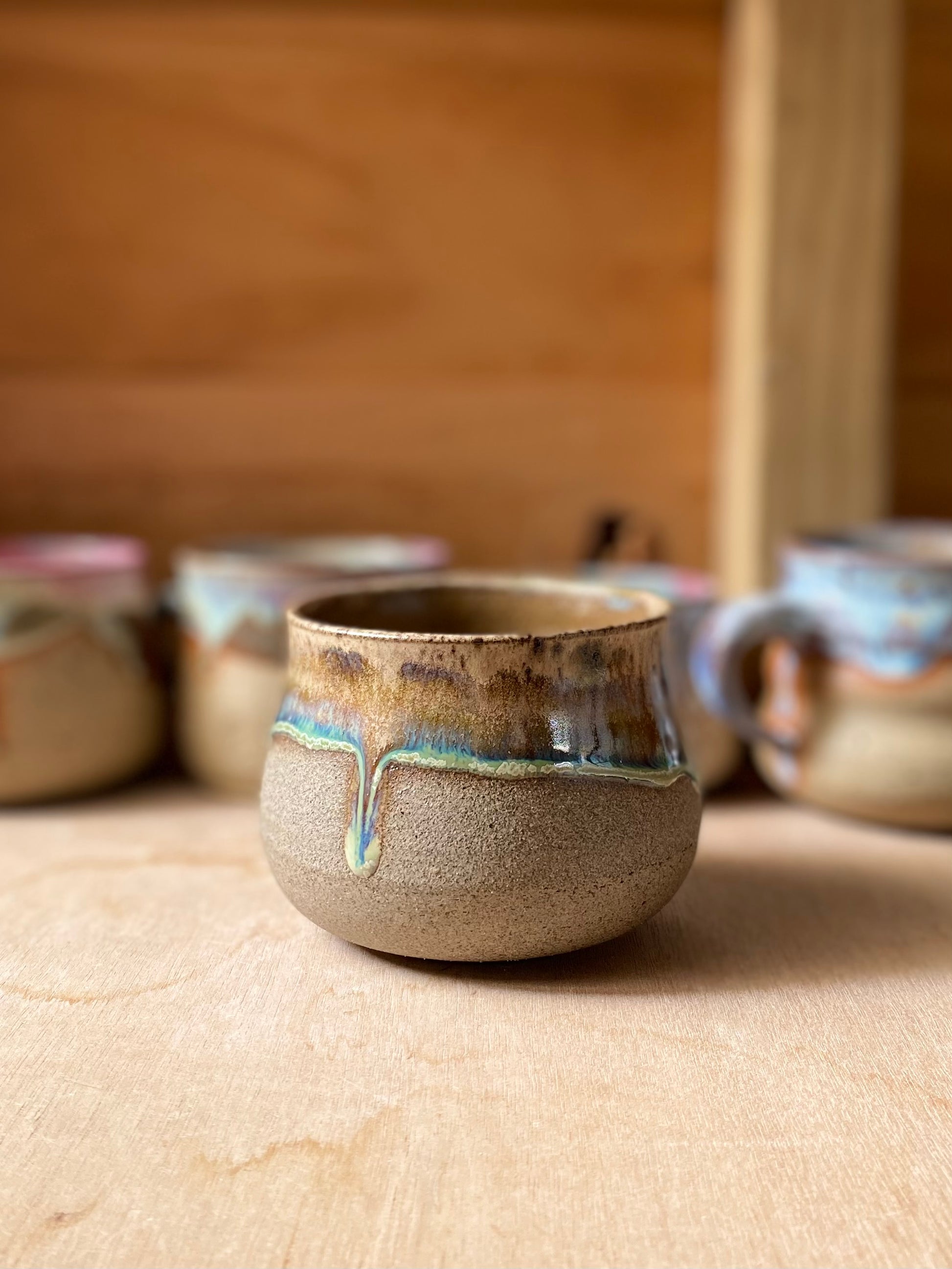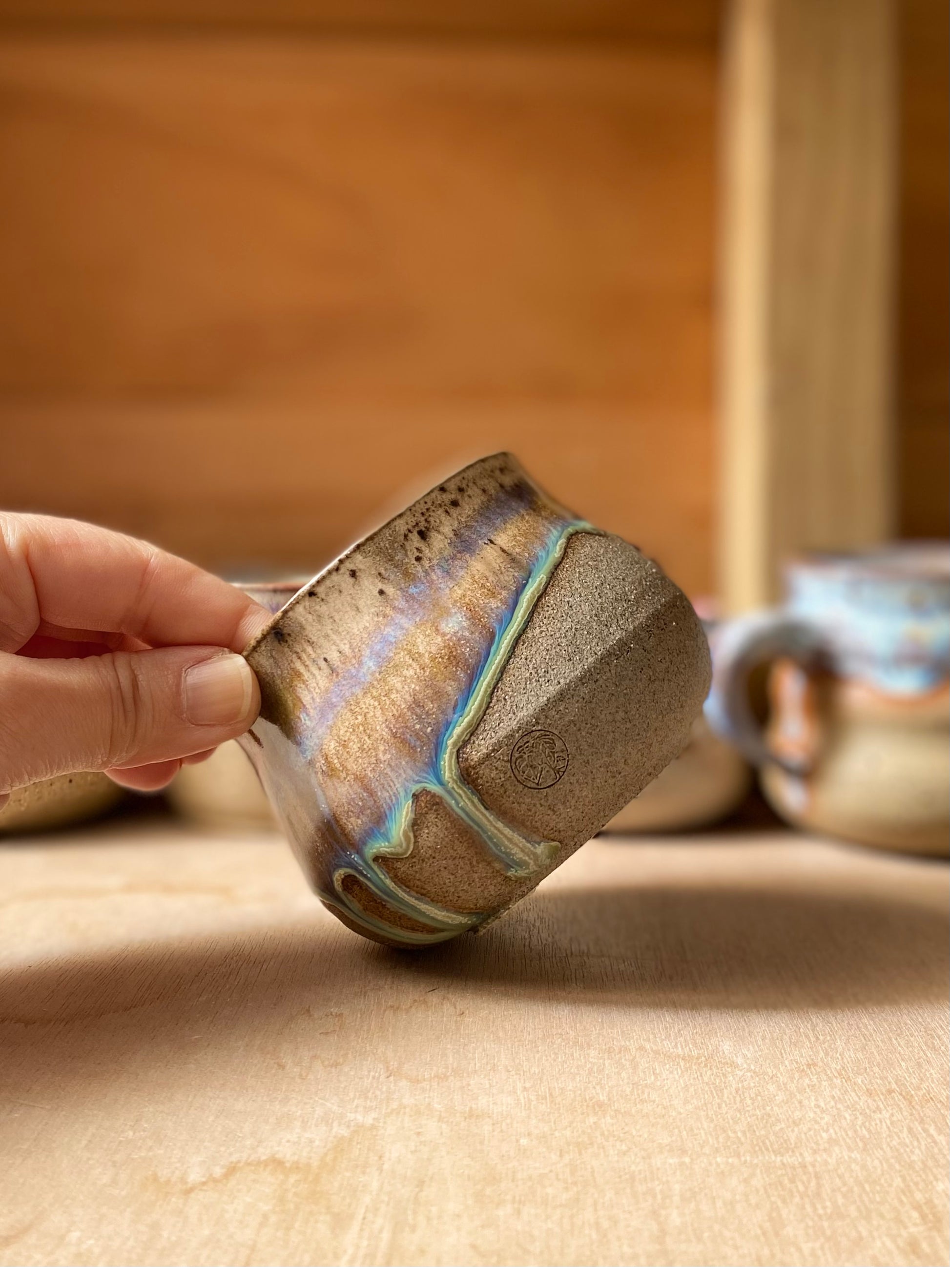 This mug is made from a grey speckled clay, hand thrown & trimmed on the wheel.