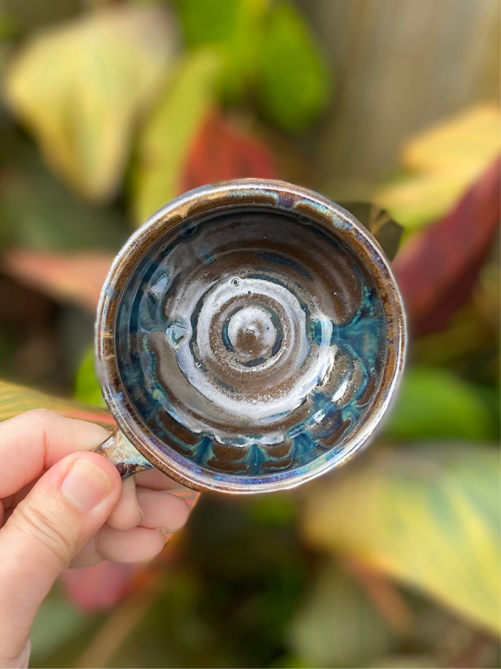 This dreamy mug is made from a mason stained black clay, hand thrown & trimmed on the wheel.