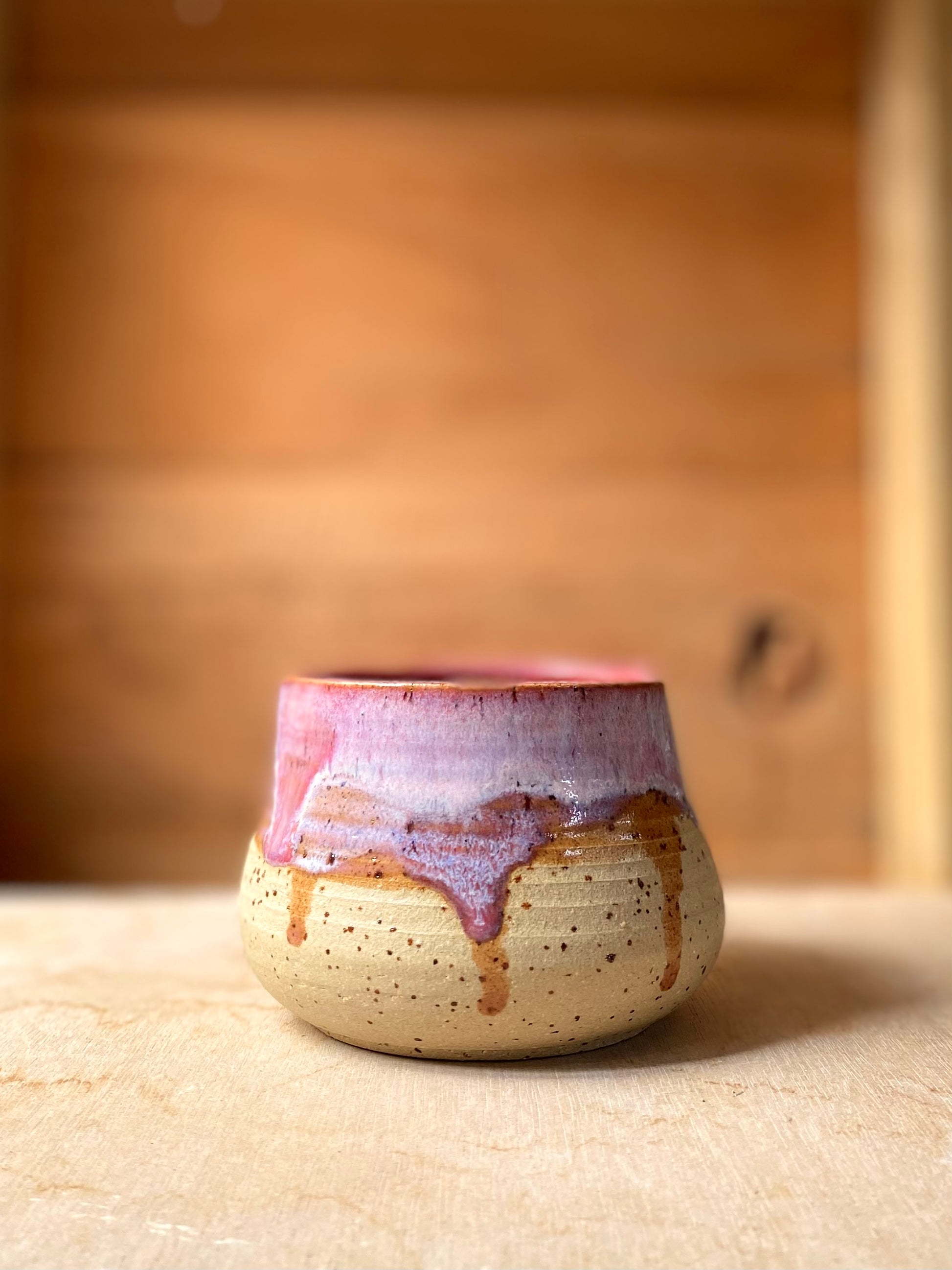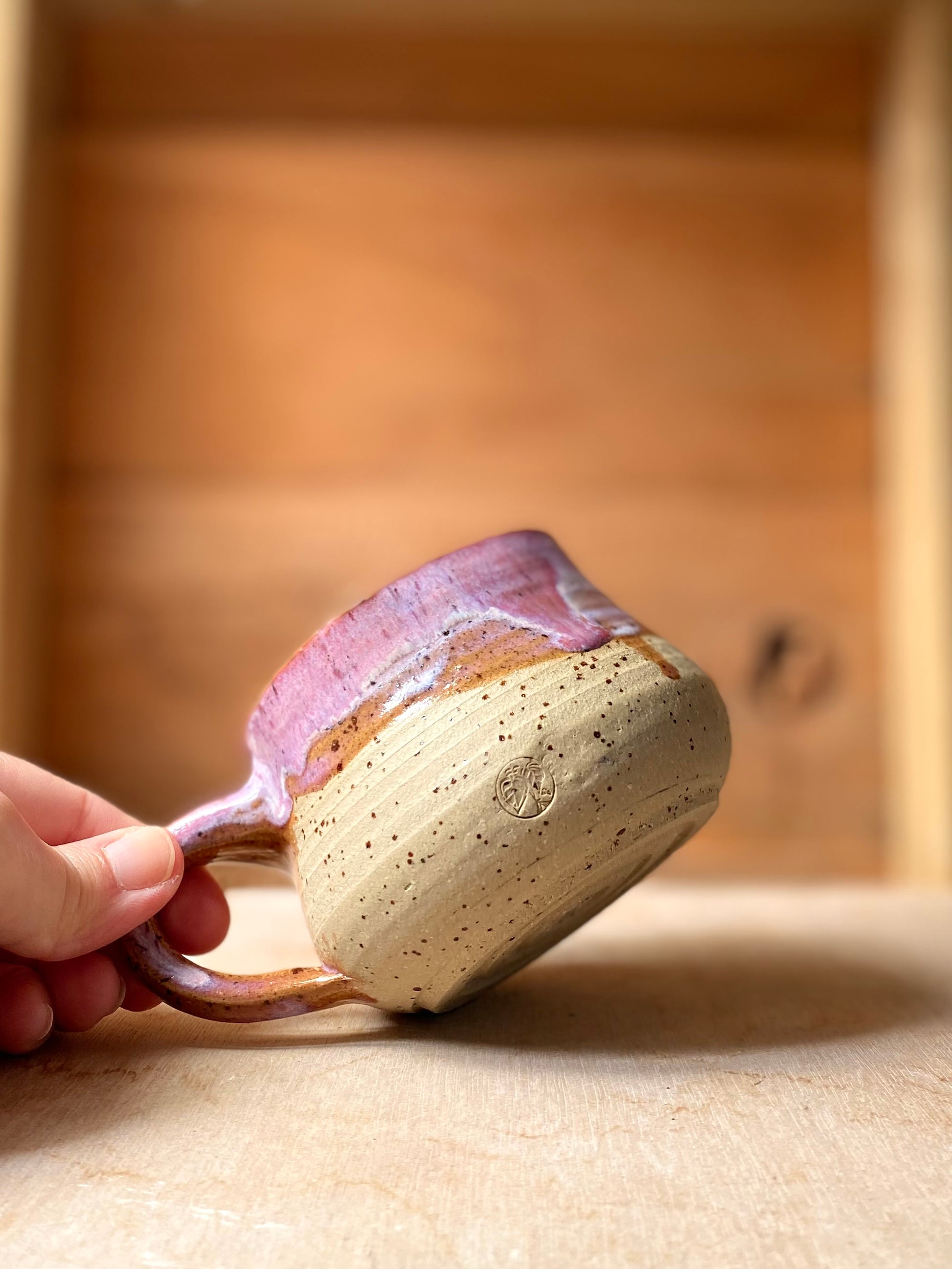 This cup is made from a midfired cream speckled clay, hand thrown & trimmed on the wheel.