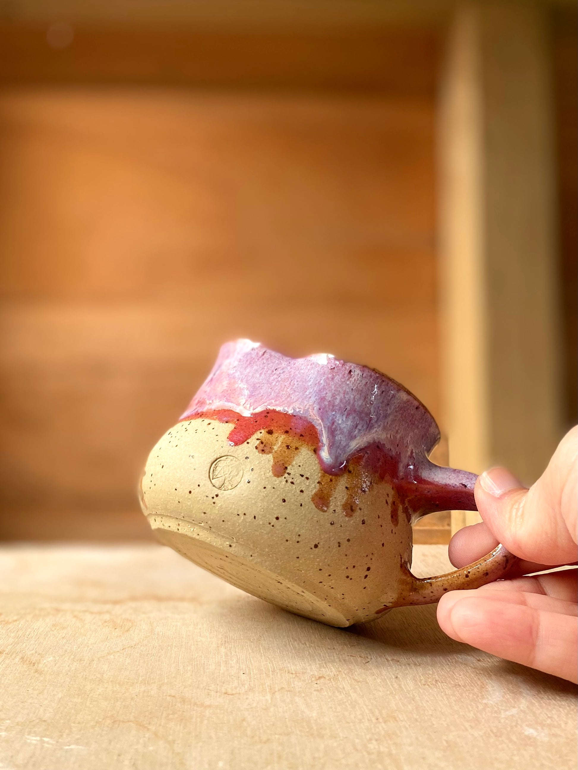 This cup is made from a midfired cream speckled clay, hand thrown & trimmed on the wheel.